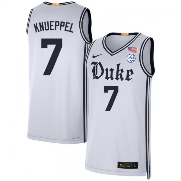 • Men Kon Knueppel Team White Duke Blue Devils #7 College Basketball NCAA Jerseys
