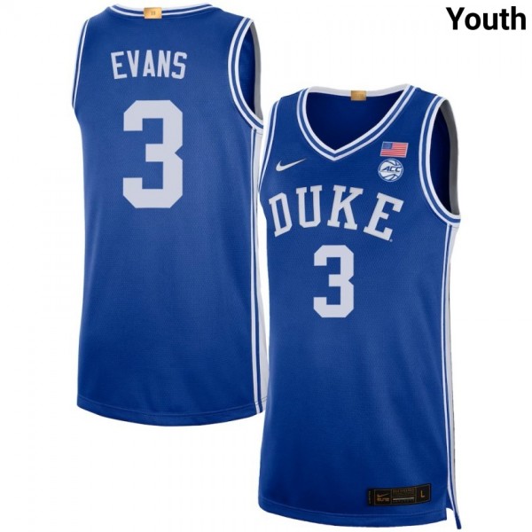 • Youth Isaiah Evans Royal Duke Blue Devils #3 College Basketball Replica Jerseys